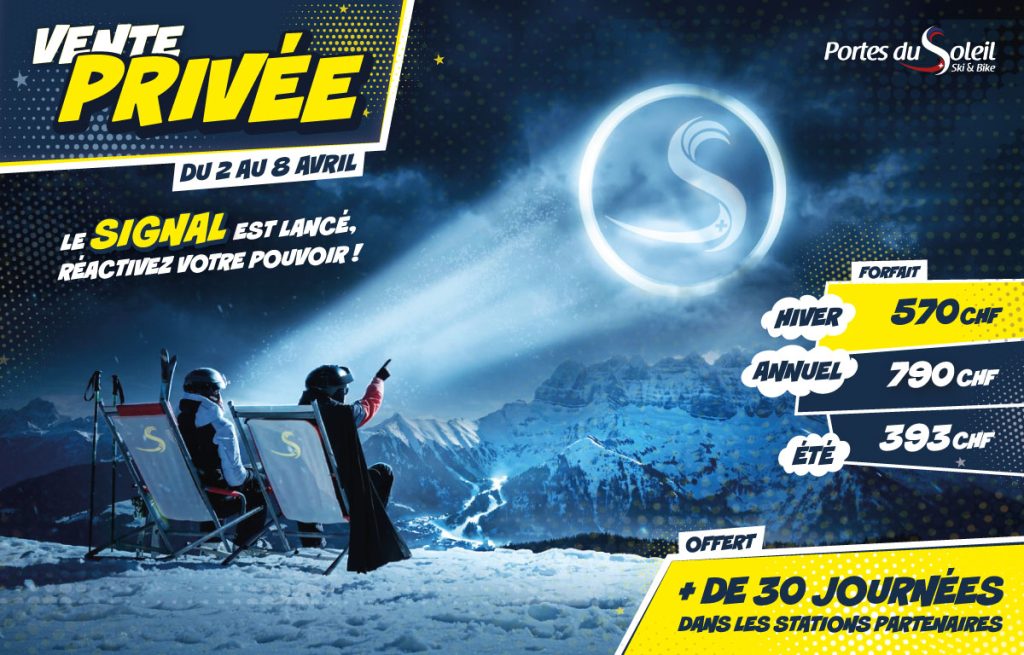 Forfait annuel Portes du Soleil (Eté 2026 + Hiver 26/27) : CHF 859.-