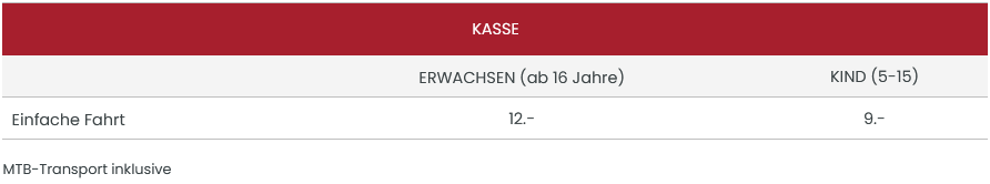 Zugang zu den meisten Liftanlagen + MTB-Transport