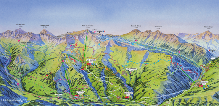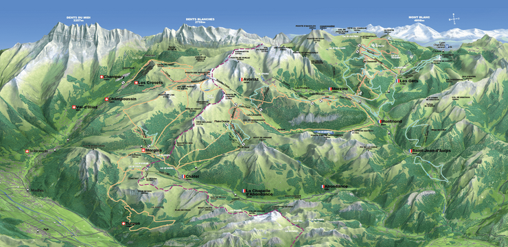 Le domaine offre 800 km de sentiers balisés et 22 remontées mécaniques pour faciliter l’ascension des sommets.